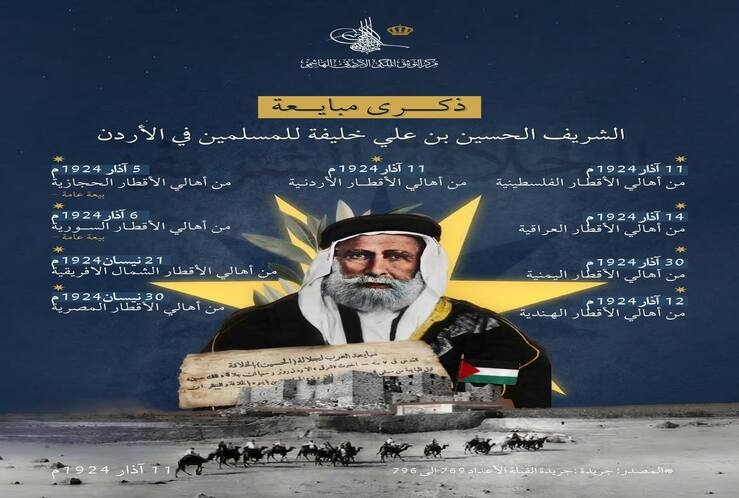 ينشر مركز التوثيق الملكي الأردني الهاشمي بمناسبة ذكرى مبايعة الشريف الحسين بن علي خليفة للمسلمين في الأردن
