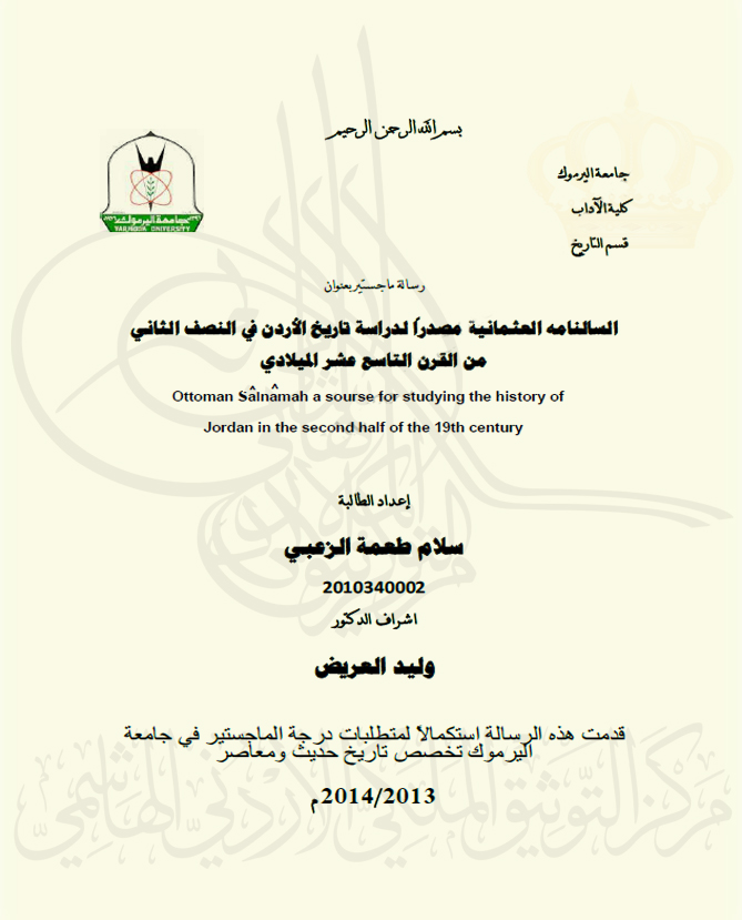 السالنامه العثمانية مصدراً لدراسة تاريخ الأردن في النصف الثاني من القرن التاسع عشر الميلادي