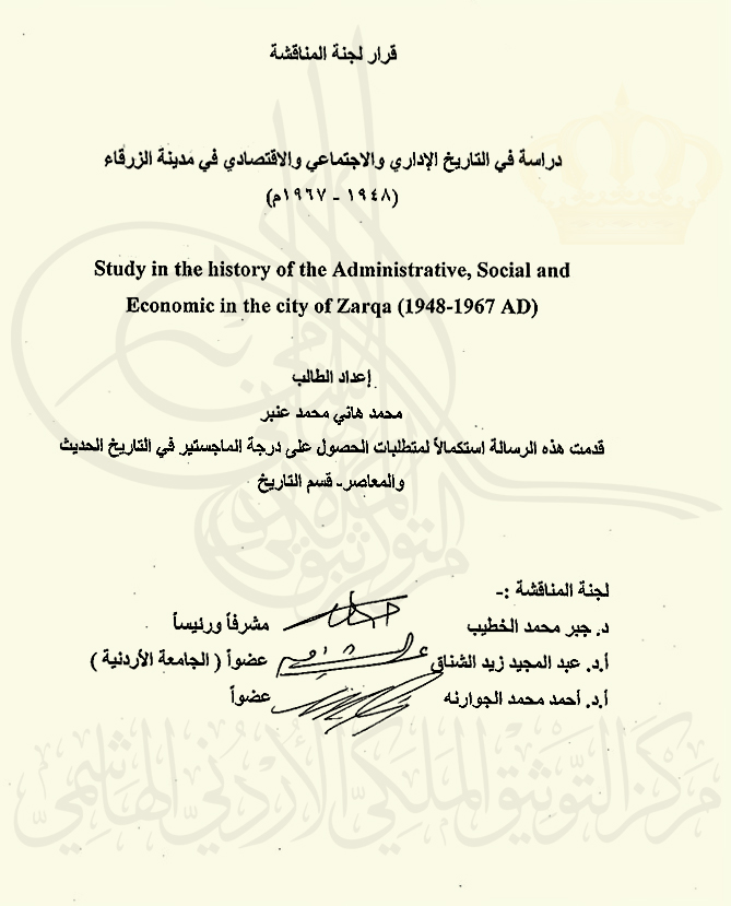 دراسة في التاريخ الإداري والاجتماعي والاقتصادي في مدينة الزرقاء (1948-1967)