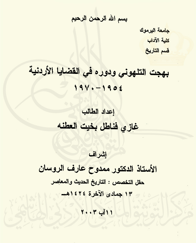 بهجت التلهوني ودوره في القضايا الأردنية 1954-1970