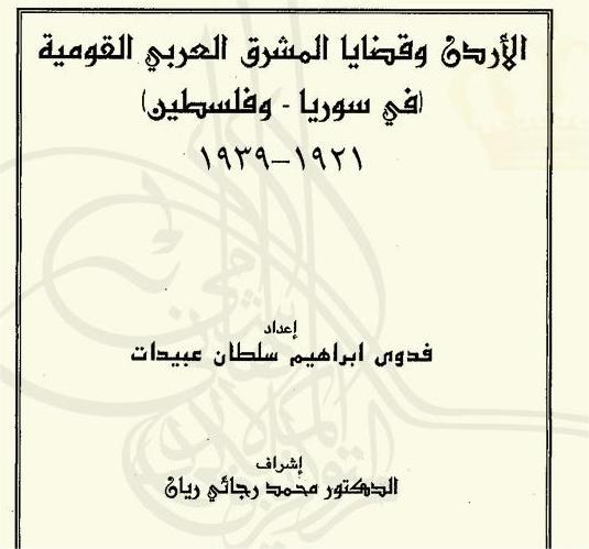 الأردن وقضايا المشرق العربي القومية في سوريا وفلسطين 1921-1939