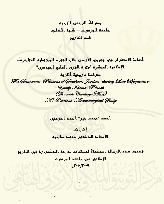 أنماط الاستقرار في جنوبي الأردن خلال الفترة البيزنطية المتأخرة-الإسلامية المبكرة "فترة القرن السابع الميلادي"