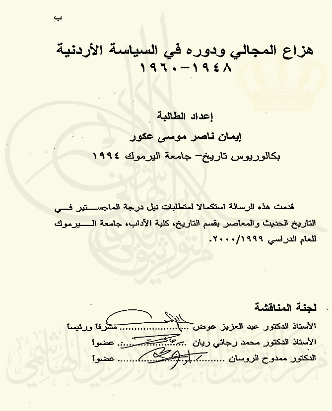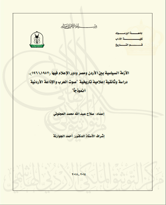 الأزمة السياسية بين الأردن ومصر ودور الإعلام فيها (1952-1961)