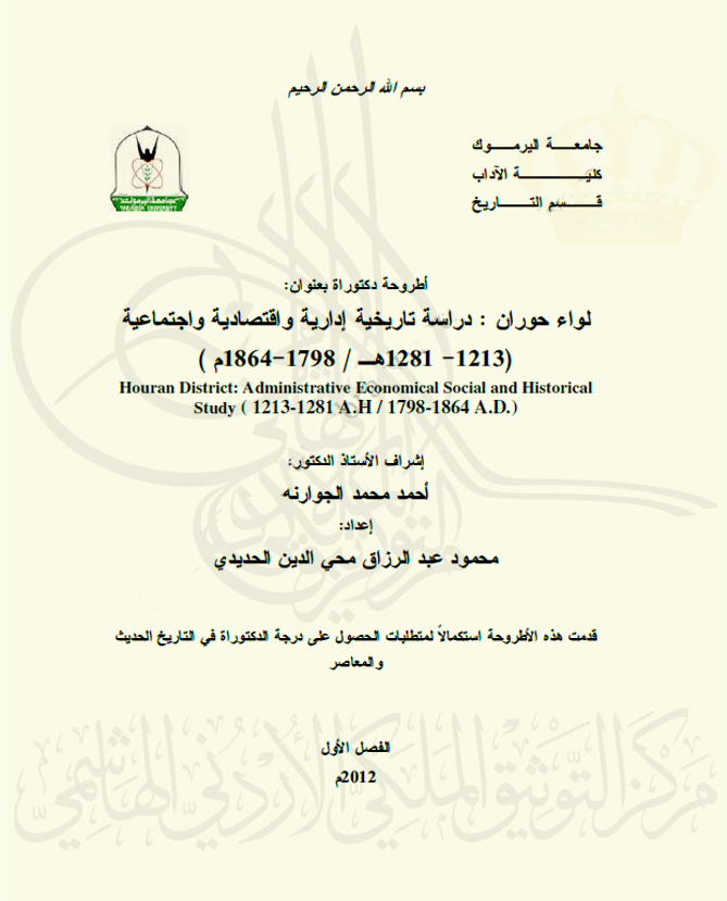 لواء حوران : دراسة تاريخية إدارية واقتصادية واجتماعية (1213-1281هـ/1798-1864م)