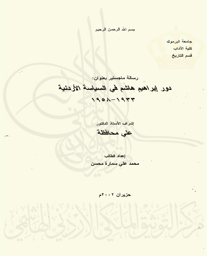 دور إبراهيم هاشم في السياسة الأردنية 1933-1958