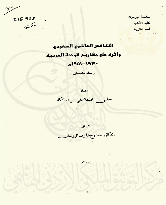 التنافس الهاشمي السعودي وأثره على مشاريع الوحدة العربية 1930-1951م