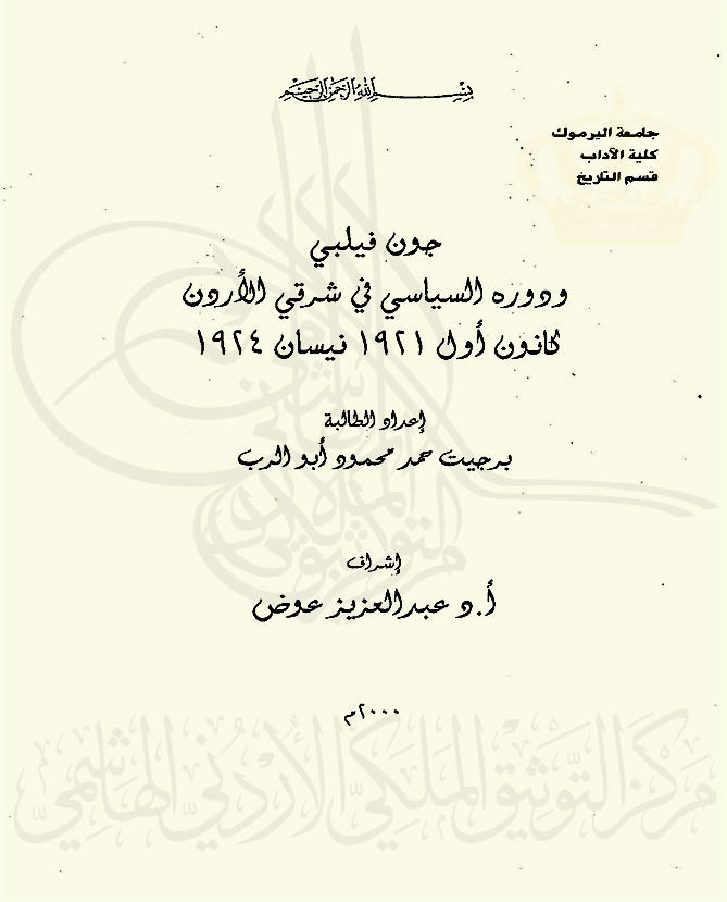 جون فيلبي ودوره السياسي في شرقي الأردن كانون أول 1921 نيسان 1924