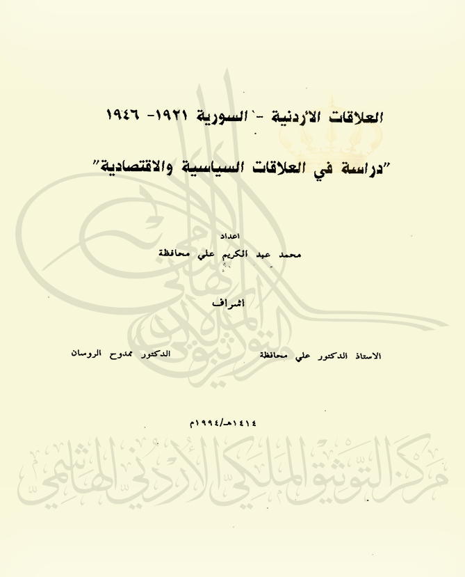 العلاقات الأردنية-السورية 1921-1946 "دراسة في العلاقات السياسية والاقتصادية"