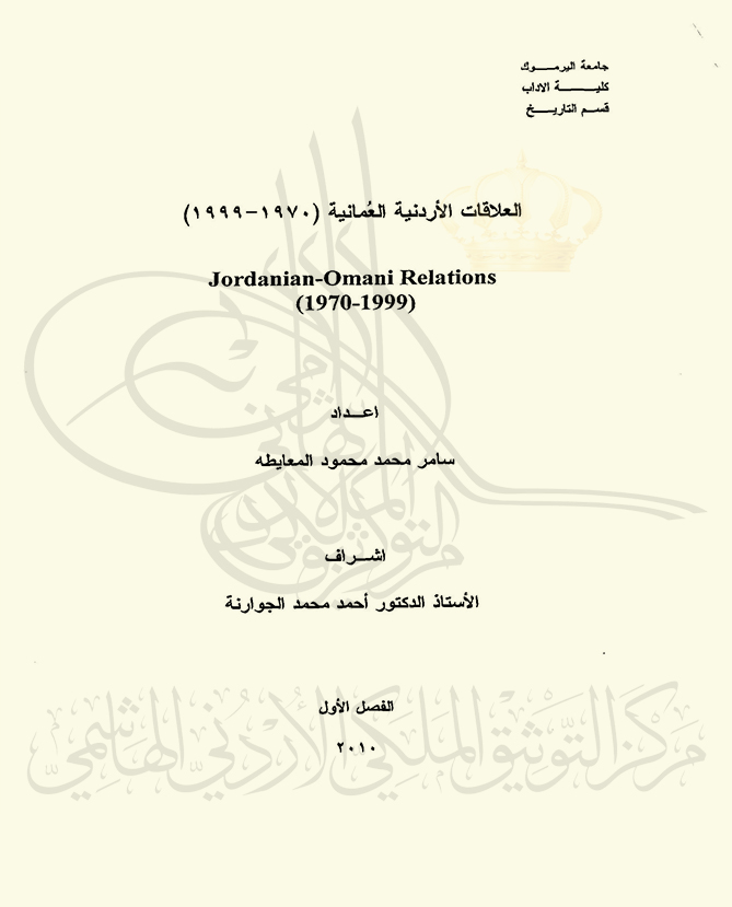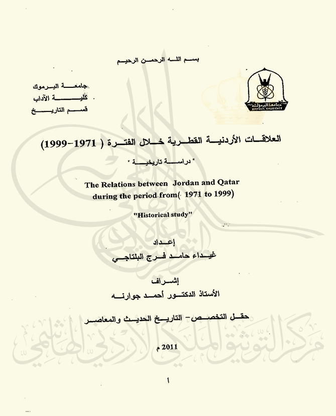 العلاقات الأردنية القطرية خلال الفترة (1971-1999) "دراسة تاريخية"