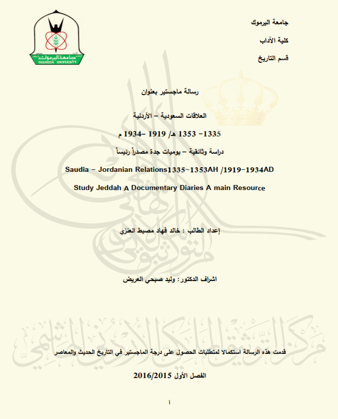 العلاقات السعودية - الأردنية (1335-1353هـ / 1919-1934م) دراسة وثائقية - يوميات جدة مصدراً رئيسياً