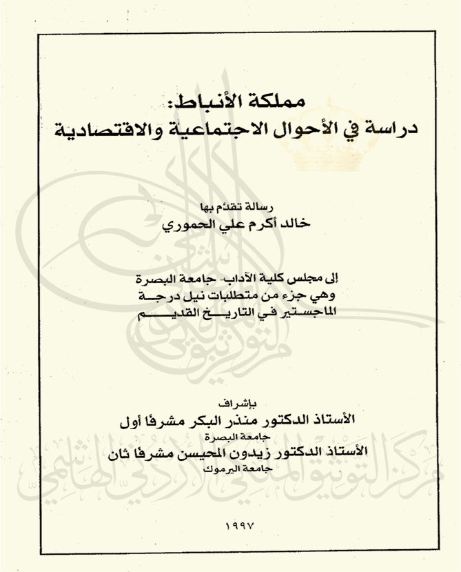مملكة الأنباط: دراسة في الأحوال الاجتماعية والاقتصادية